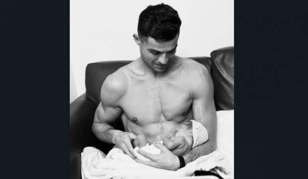 Популярный футболист английского «Манчестер Юнайтед» выложил снимок в черно-белой обработке. На фото Роналду держит на руках маленькую дочь, в одной лишь шапочке и подгузниках. Малышка умещается у папы в одной ладошке.